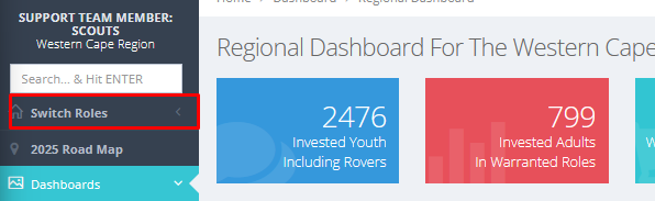 When you are processing anything to do with your course you MUST ensure that your Role is set to Regional Course Director. Click on Switch Roles and click – your dashboard will then reload.